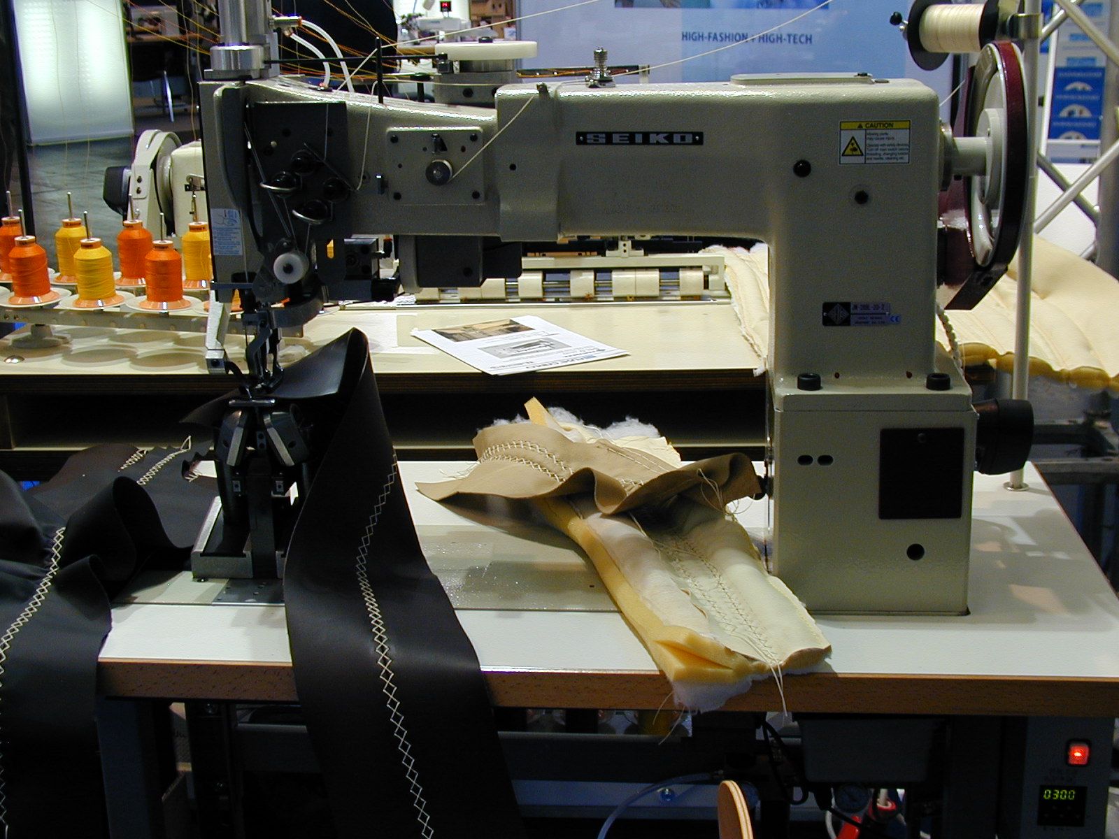 Одноигольная швейная машина с тройным продвижением, с платформой рукавного типа